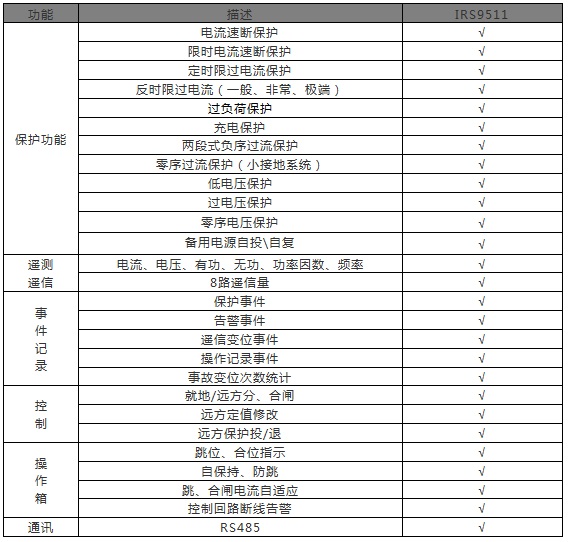 IRS9511进线保护及备自投装置适用于66kV及以下的进线柜的保护、测控、备自投。