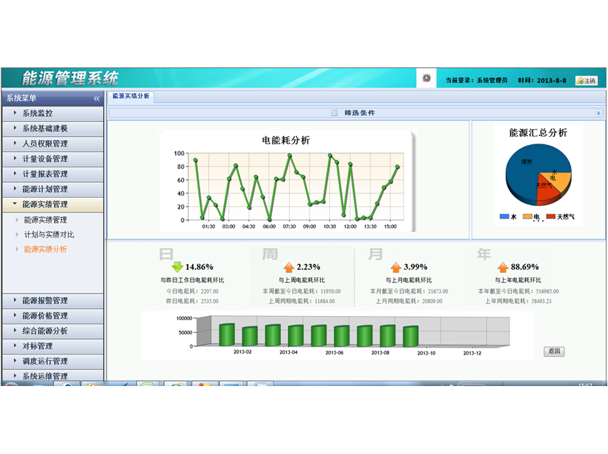 通过能源管理系统的计划过程、平衡预测、各主要工序的能源生产和消耗情况的监控与分析,实现了能源的工序成本核算,将企业各工序、设备的用能成本进行分类,将用能转换为实际成本,建立客观的以数据为依据的能源成本消耗评价体系。